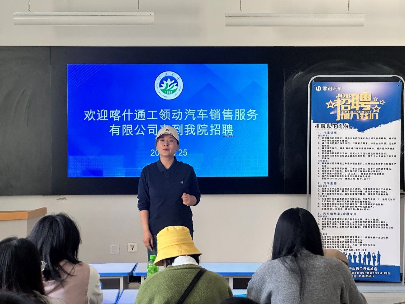 2026年3月25日,喀什通工领动汽车销售服务有限公司专场招聘会在文科楼A310教室举行。本...